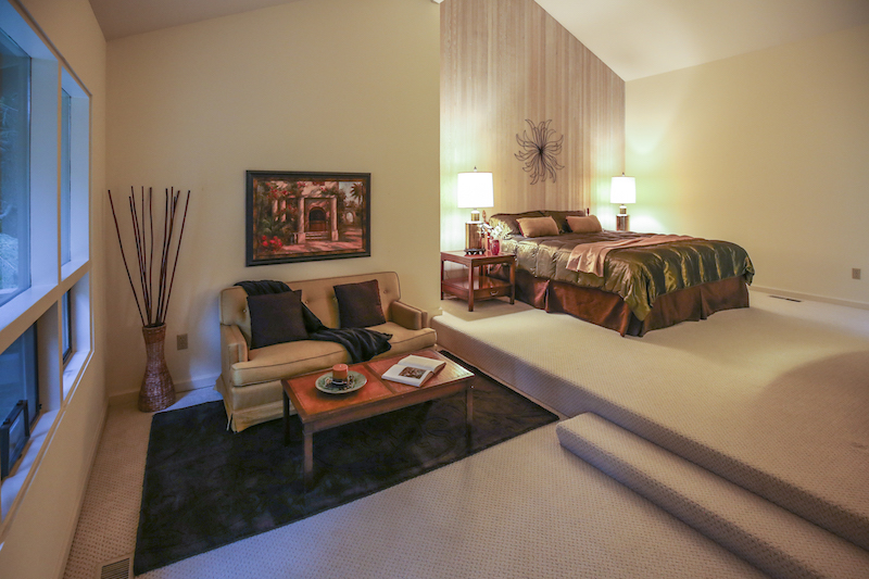 Home staging tip: Every time we stage, we take extra care not to damage anything within the property, particularly when it comes to hanging art on a wood panel wall. First, we chose some very light art, which allows us to use a thinner nail. Second, we hammer the nail where the two panels join. Lastly, we use wall decorations that can be hung in many different ways, without having one single spot for the nail. Such as this wrought iron flower, for example, that can be hung either at the tip of the petals or in the center. This makes it possible to adjust its position according to where the nail is placed.