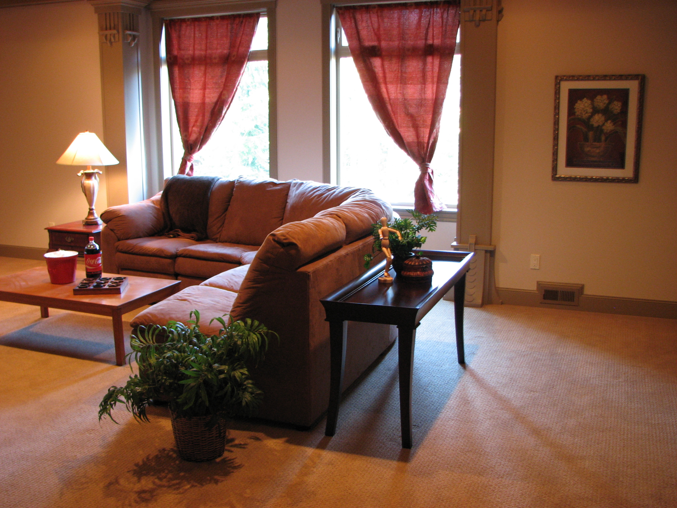 Staging tip: “I love sectionals. I think that some rooms are just meant to be used with a sectional in it. Take this media room for example. Even though the original sectional was too big to be used with all its pieces, we decided to remove the very end and disguise the side with a floor plant. What we obtained by this solution was more space to walk around the room and savings for the seller, who didn’t need to rent any furniture for a different seating arrangement”.