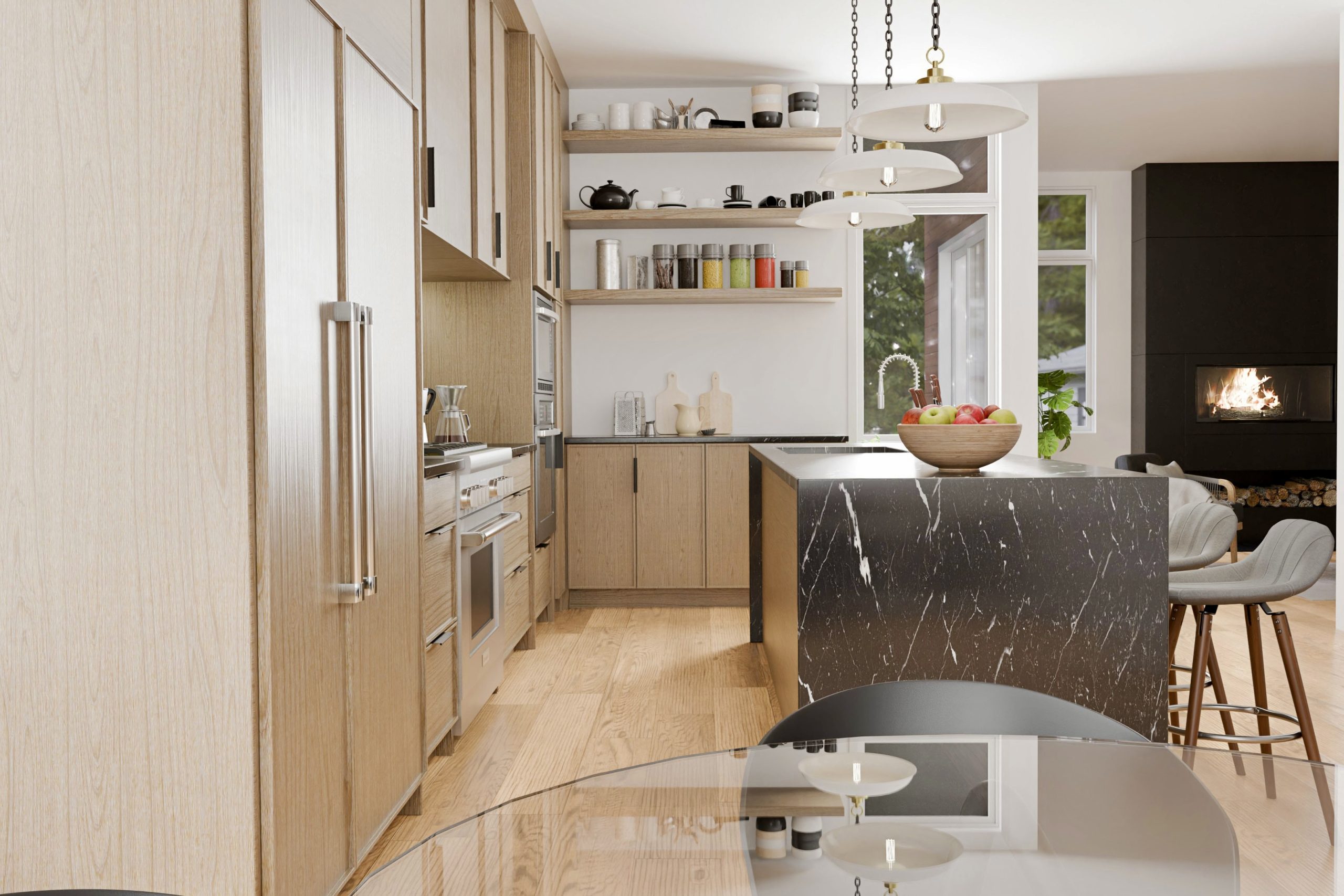 Modern wood kitchen design with a neutral palette, helping the builder visualize and confidently choose materials for a stylish, functional final result.