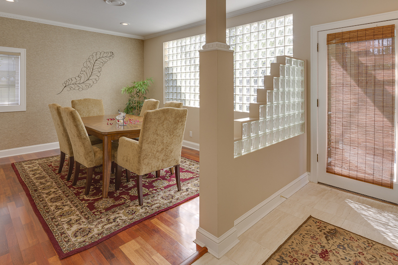 Home staging tip: If you want to add just a little bit of color and sparkle to the table top, consider using some beads to spread around some candles (like in this case), a vase or a plant.