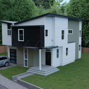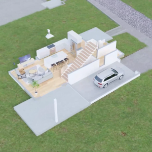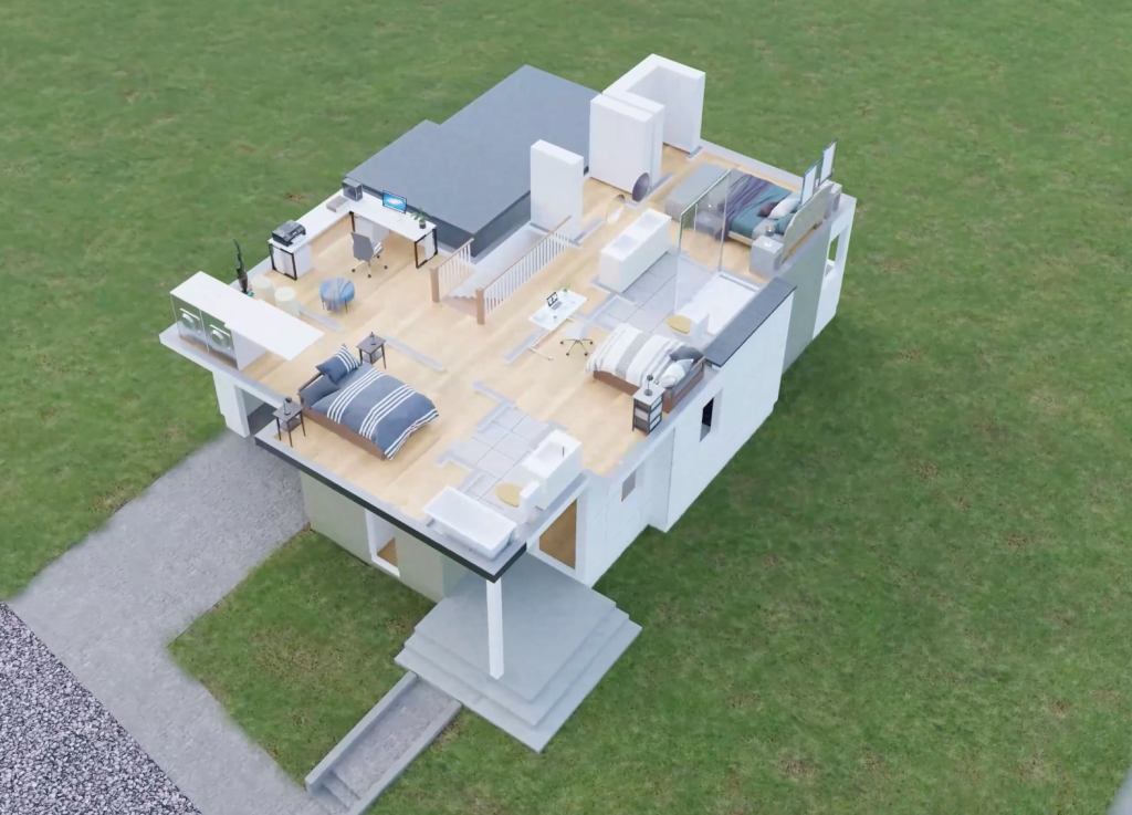 We created a video that showed the building process, starting from the floor plan to the final house, within its residential neighborhood.